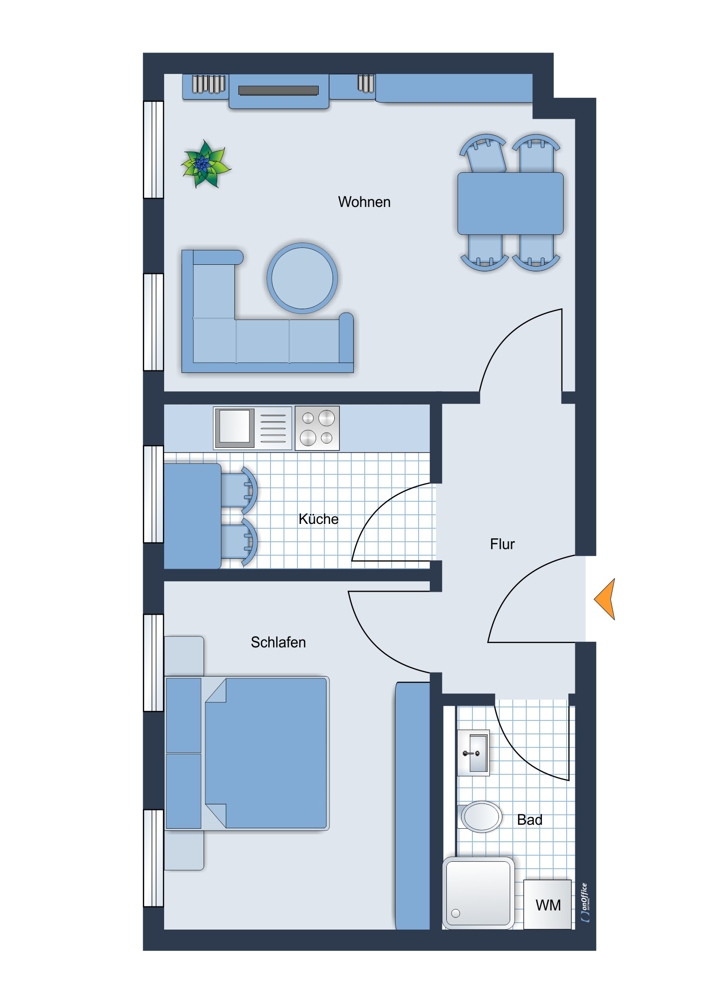 + innenliegendes Bad mit Dusche und Waschmaschinenanschluss