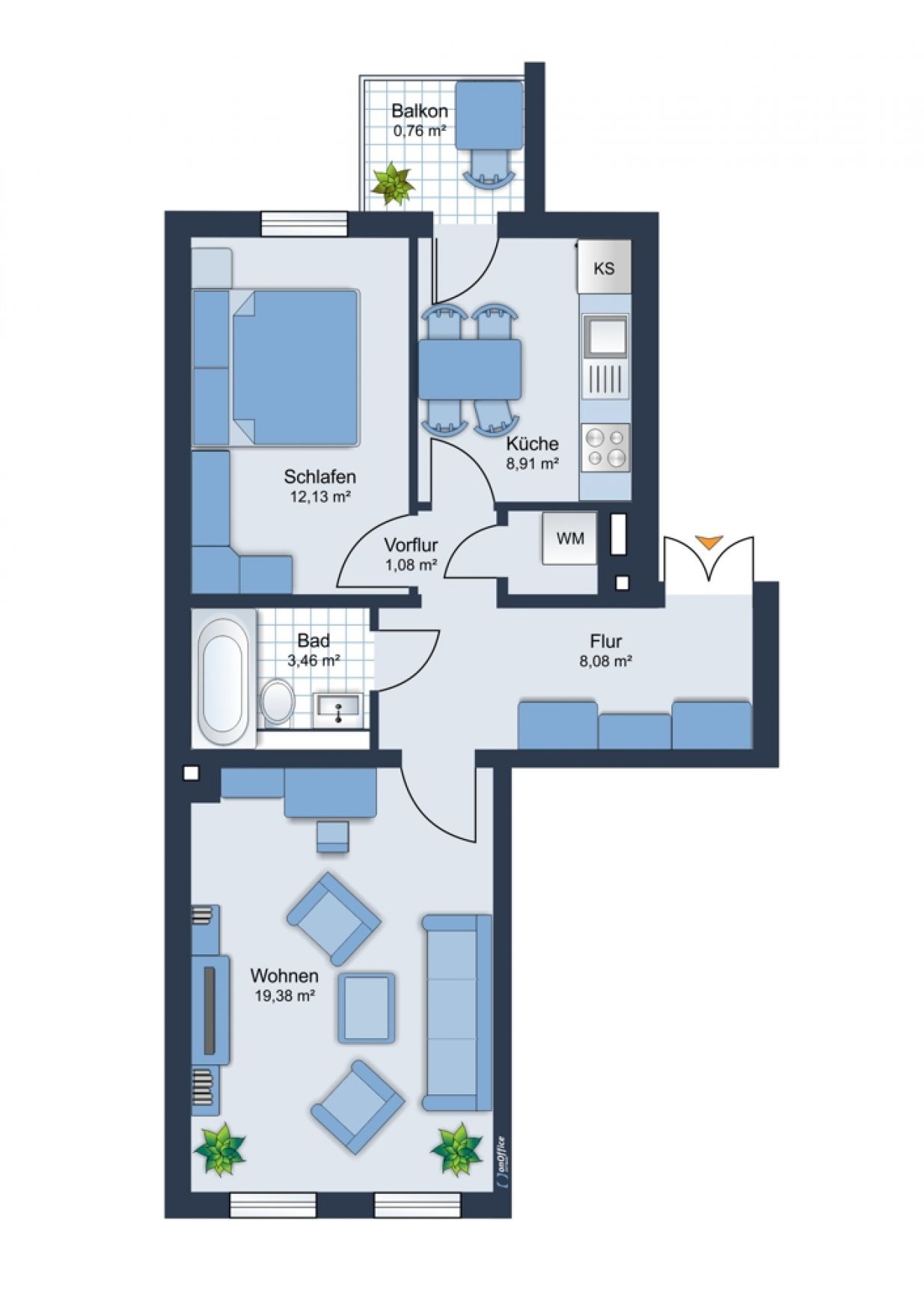 + separater Abstellraum mit Waschmaschinenanschluss
