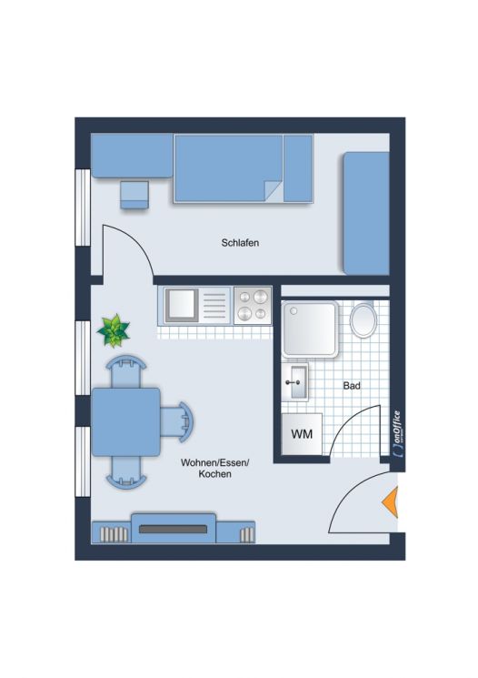 + kleiner "Wohn- Essbereich" mit offener Küche sowie Zugang zum Schlafzimmer
