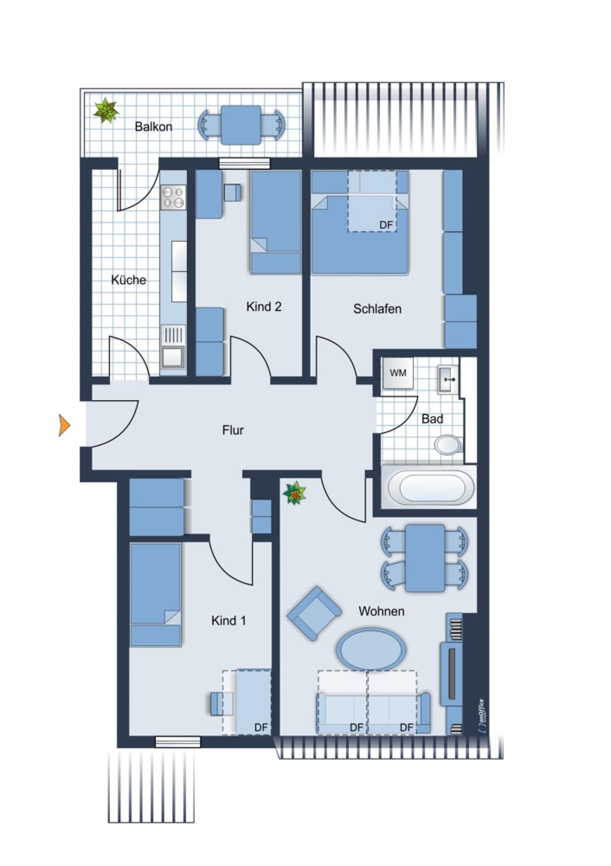+ zwei weitere Zimmer welche individuell als Kinder- und / oder Arbeitszimmer genutzt werden können