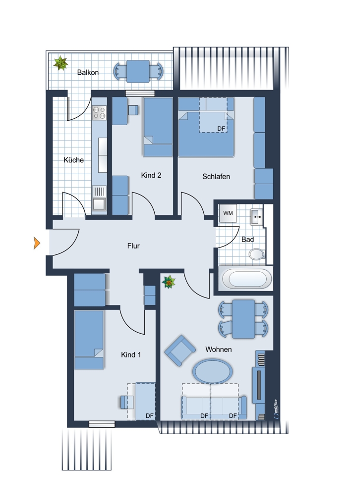 + Flur / Eingangsbereich - keine Durchgangszimmer