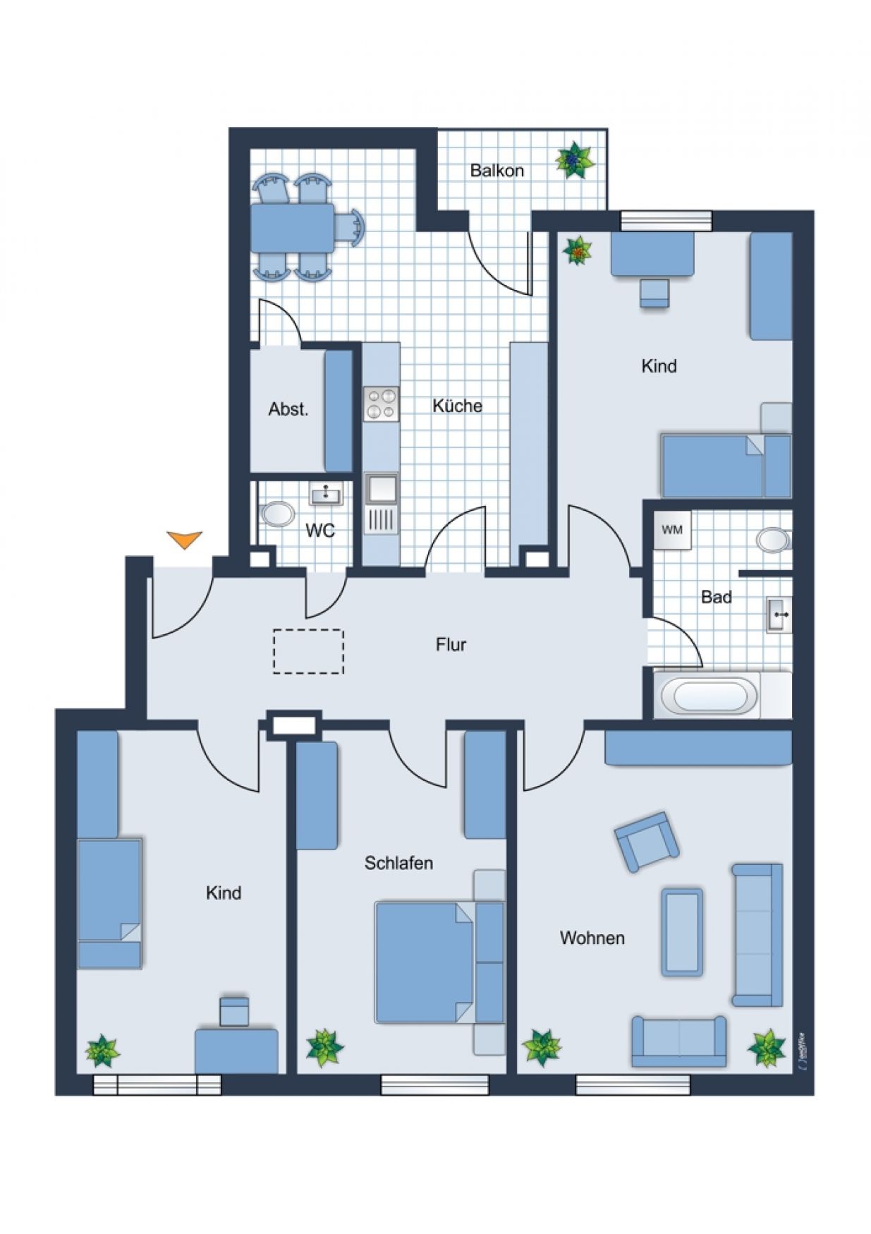 + Flur / Eingangsbereich mit Zugang zu allen weiteren Räumen